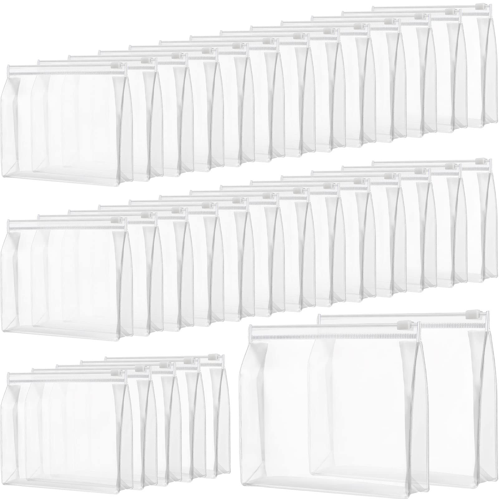 - Enough to Use and Store: there are 60 pieces of small clear makeup bags, each of which is about 15 x 3.5 x 13 cm/ 5.9 x 1.4 x 5 inches, compact and portable to hold your lipsticks, eye shadow, sunglasses, and other necessities
