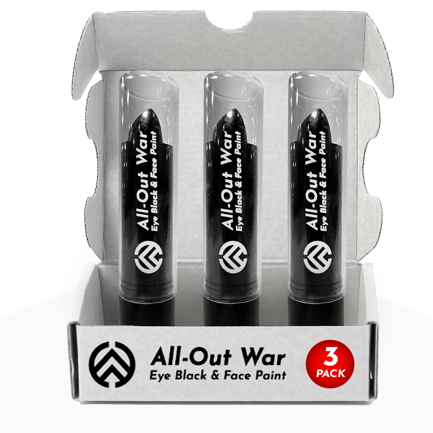 All-Out War Eye Black Baseball Accessories, Sports Drip Stick Eyeblack Paint, Softball, Lacrosse, Football & Baseball Gear, Eye Black Stick, Baseball Stuff Designed by a Youth Baseball Player, 3 Pack