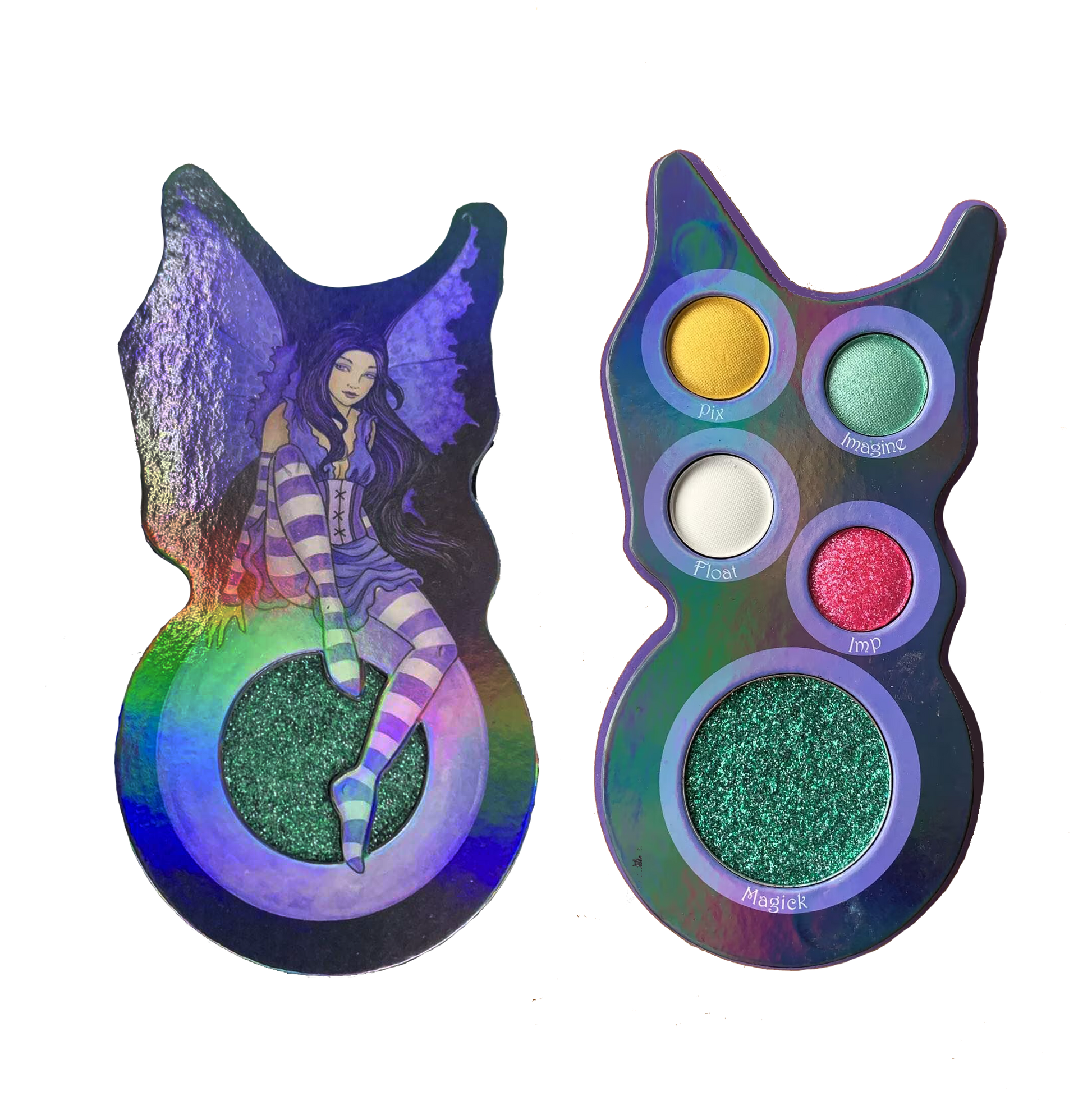 WHAT IT IS: This unique palette features a larger glitter color and 4 smaller eye shadow shades. The packaging itself is holographic!