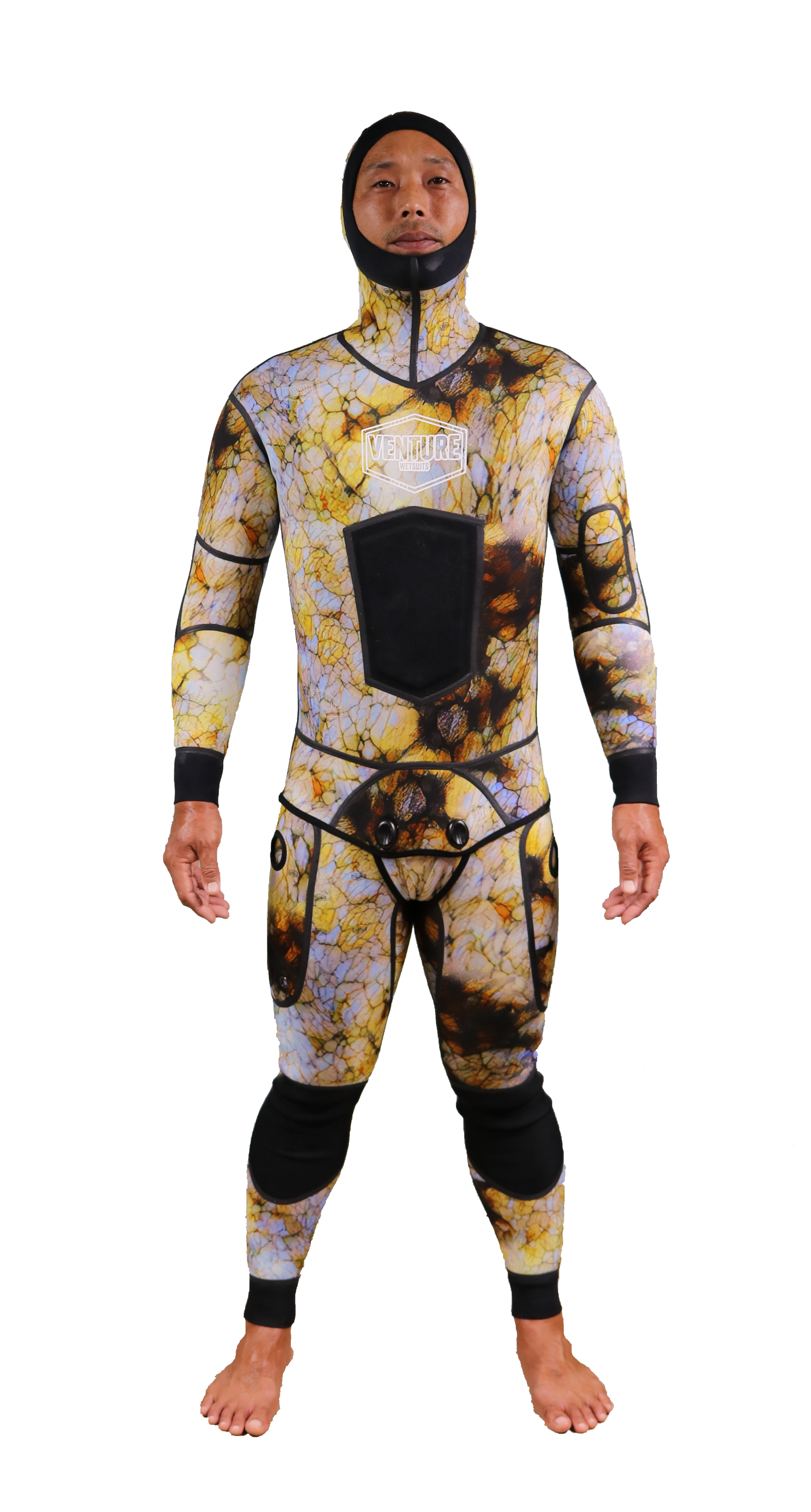 Stand out and blend in during dives in the Venture Wetsuits Blinky Tako Wetsuit. The Japanese word "Tako" which means octopus was introduced to Hawaii by early Japanese settlers. The name TAKO is still used today at local fish markets and by divers. Wetsuits are unisex and fit great for men and women.