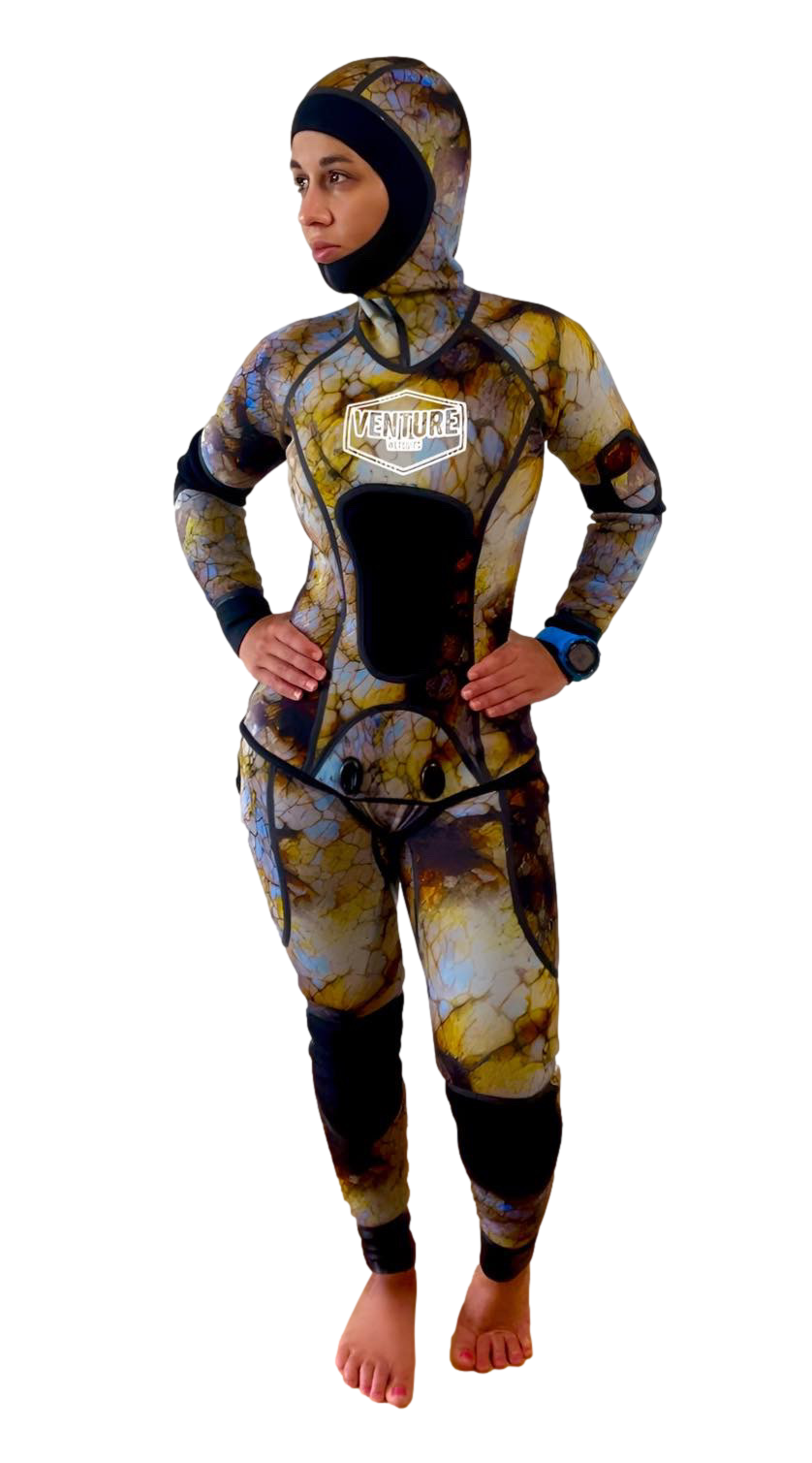 Stand out and blend in during dives in the Venture Wetsuits Blinky Tako Wetsuit. The Japanese word "Tako" which means octopus was introduced to Hawaii by early Japanese settlers. The name TAKO is still used today at local fish markets and by divers. Wetsuits are unisex and fit great for men and women.