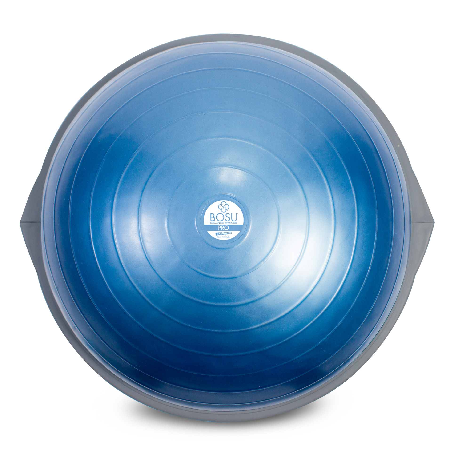 Featuring a new, improved design and durability, the BOSU® PRO Balance Trainer has a bladder weight of 8 pounds, and a dually over-molded platform for extra strength. It has a smooth, non-skid, non-marking base. The BOSU® PRO Balance Trainer has a blue dome with logo detailing, light grey clamp and platform, and includes a foot pump, BOSU® Integrated Balance Training Manual and DVD.