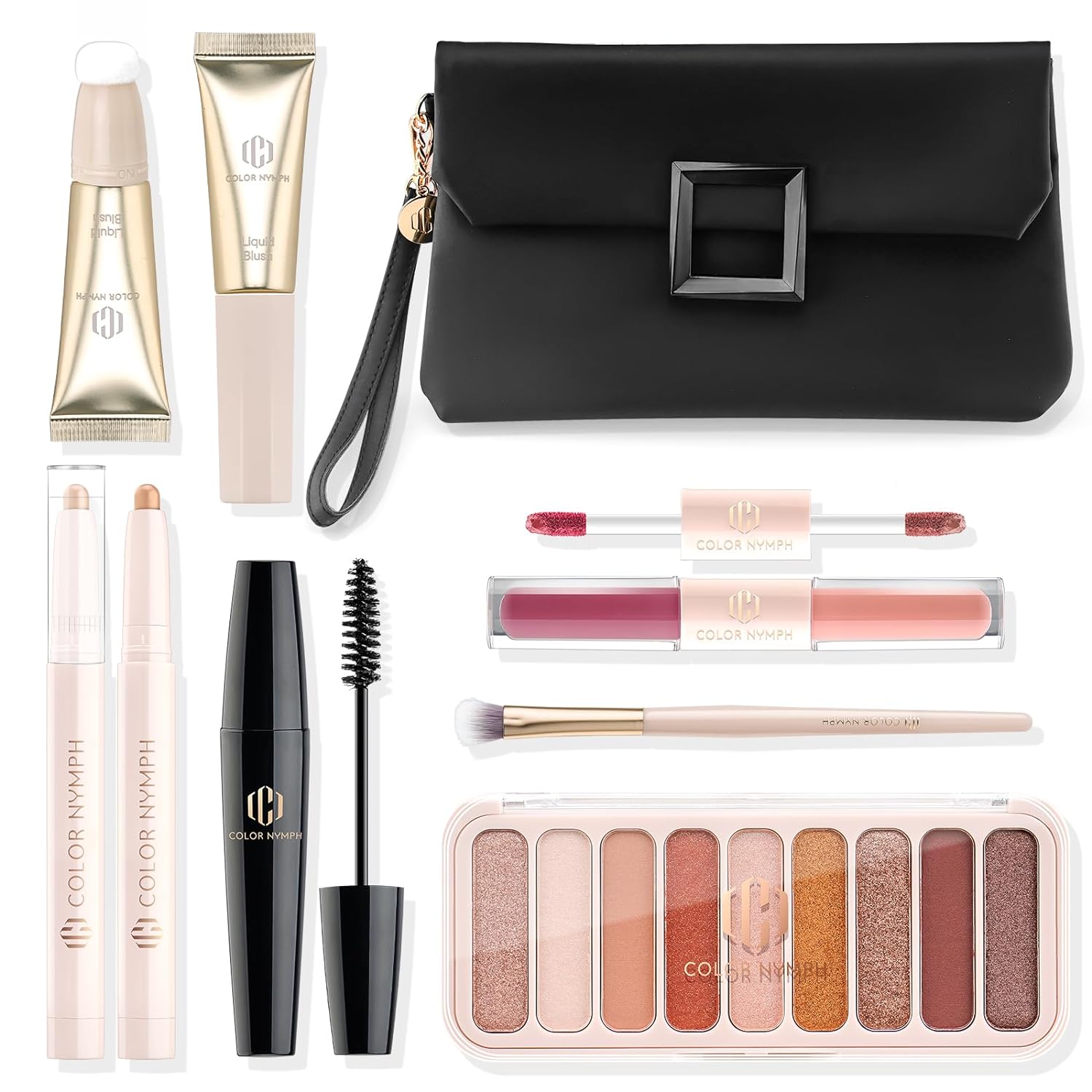 Color Nymph All In One Makeup Kit For Teens And Girls With Waterproof Handbag Makeup Kit Included 9 Colors Matte And Pearl Eyeshadow Palette Liquid Blush, Double Ended Lipgloss Concealer Brush Mascara