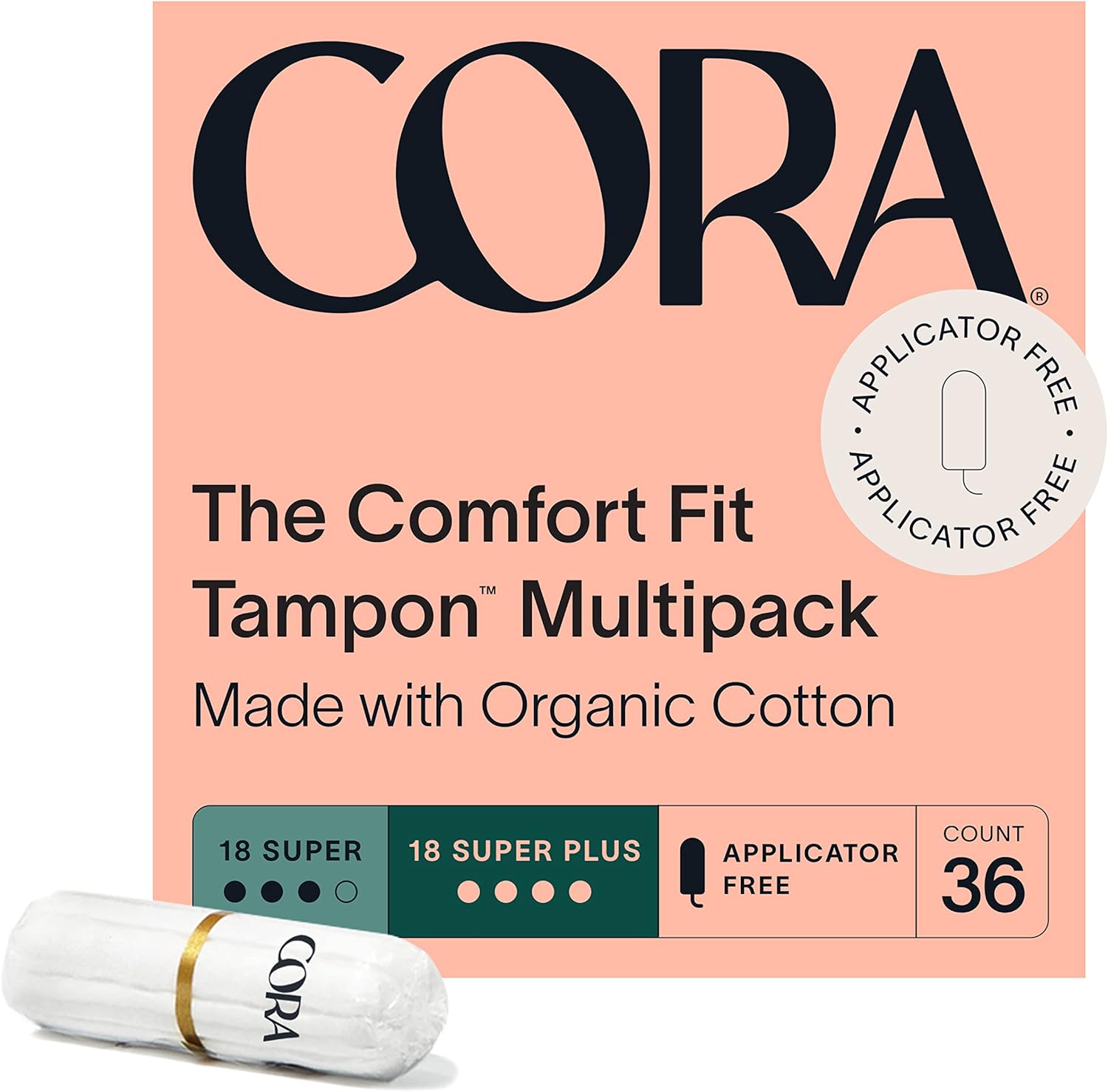 100% CERTIFIED ORGANIC COTTON: Cora’s non-applicator tampons are comfortable, highly-absorbent, hypoallergenic and made with GOTS certified organic cotton because what you put in your body matters. Note: Packaging May Vary