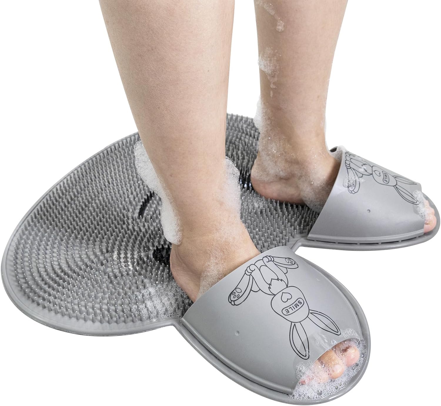 Foot Scrubber in Shower Mat Silicone with Suction Cups Feet Toe Non-Slip Massager Pad Scraper Bath Back Rabbit Wall Mounted (Gray)