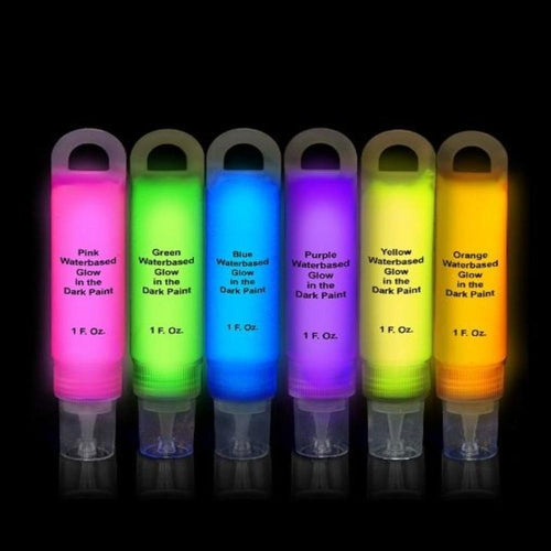 - 6 Tubes of 1 oz glow paint in assorted colors are sold per pack