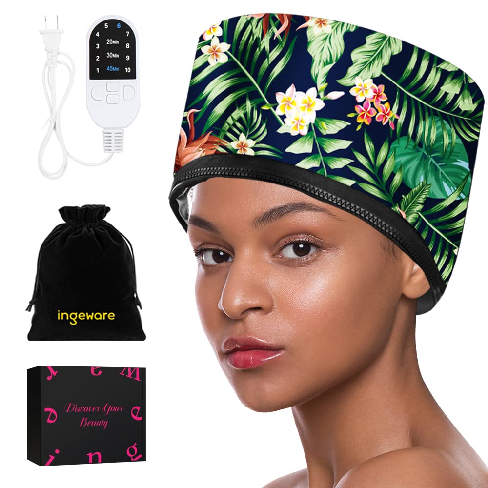 Heat Cap for Deep Conditioning, Ingeware Thermal Cap for Hair Steamer Cap for Natural Hair Portable Electric Heat Hair Spa Cap for Home Use Pattern (Floral Print)