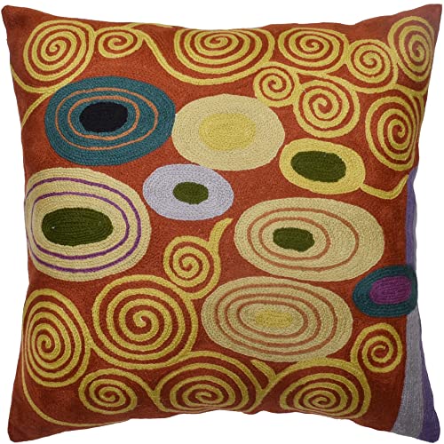 Kashmir Designs Klimt Rust Pillow Cover | Art Nouveau Bronze Pillows | Mid Century Modern Copper Pillowcase | Modern Chair Cushion | Modern Farmhouse Pillows | Hand Embroidered Wool Size 18x18