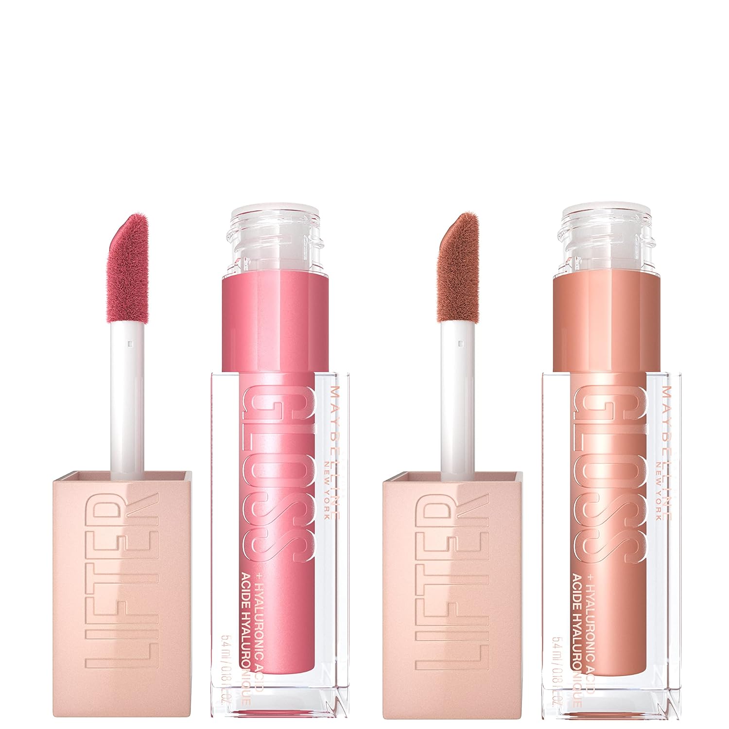 Maybelline Lifter Gloss with Hyaluronic Acid Makeup Bundle, Lip Gloss Set Includes 1 Nude Lip Gloss in Petal and 1 Pink Lip Gloss in Stone
