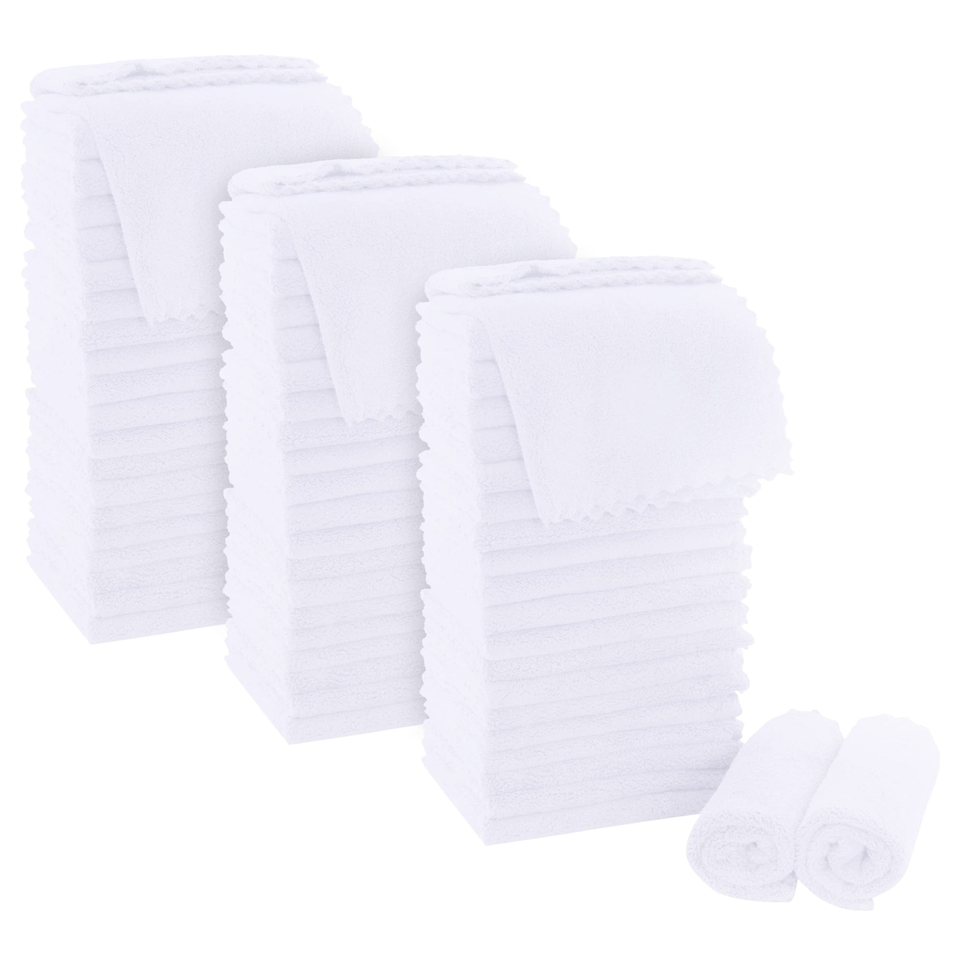 MOONQUEEN Ultra Soft Premium Washcloths Set - 12 x 12 inches - 72 Pack - Quick Drying - Highly Absorbent Coral Velvet Bathroom Wash Clothes (White)