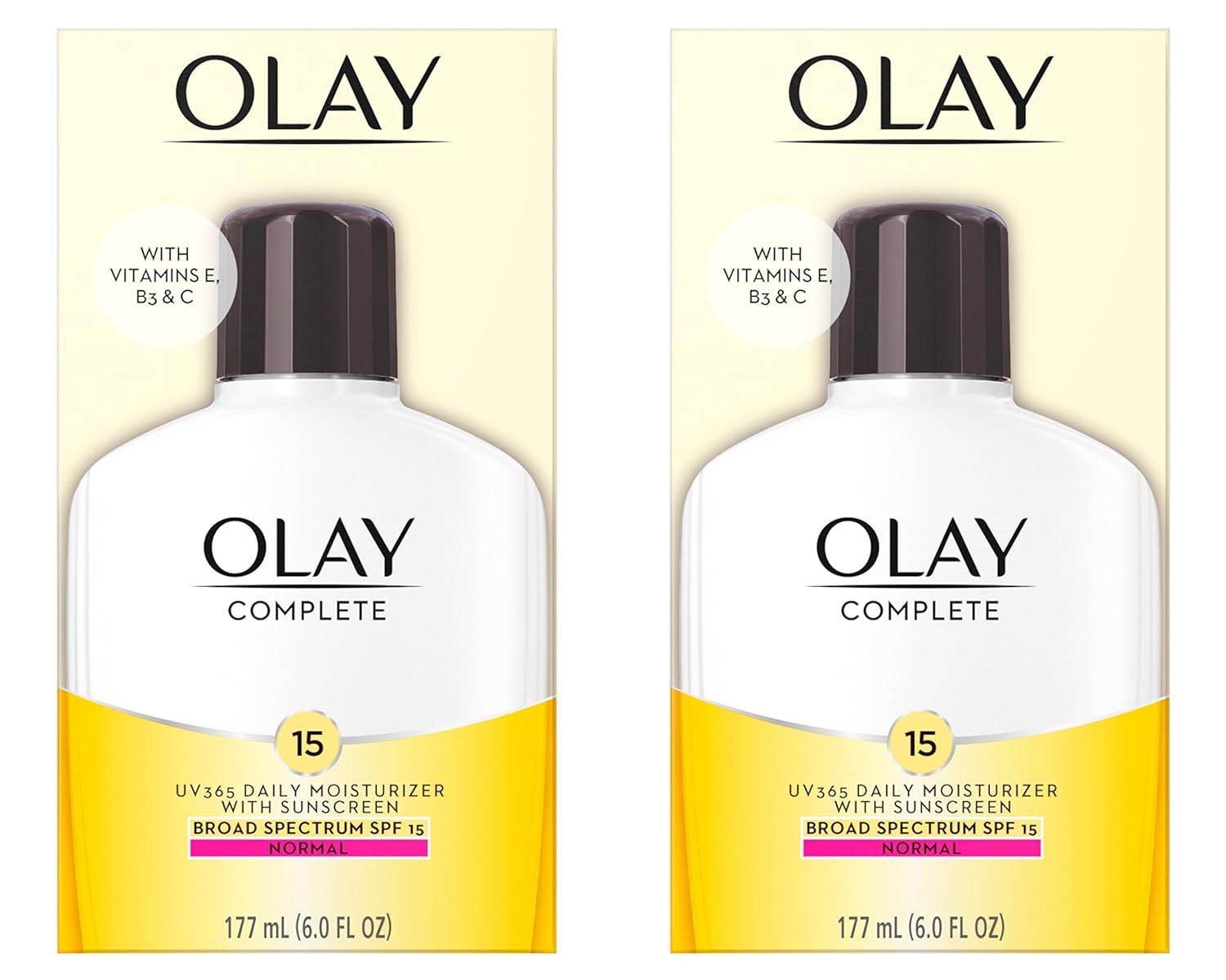 Olay Face Moisturizer Complete Lotion All Day Daily Facial Moisturizing Lotion SPF 15 for Normal Skin and Hydration, Oil-Free Non-Greasy, 6 Fl Oz (Pack of 2)