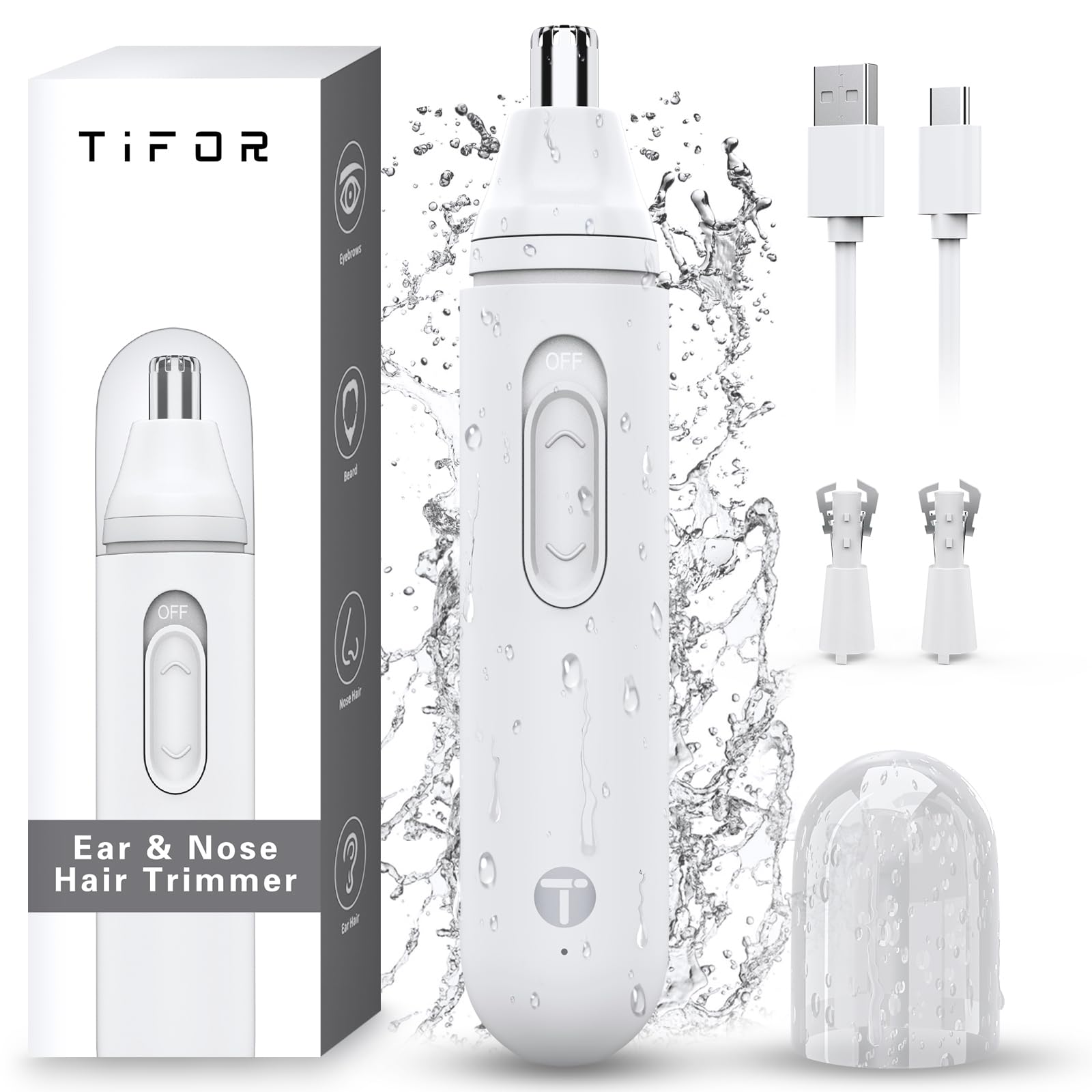 TIFOR Ear and Nose Hair Trimmer for Men - USB Electric Nose Hair Trimmer for Women - Painless Waterproof Eyebrow Facial Hair Removal Nose Clipper with 2 Extra Replaceable Dual-Edge Blades